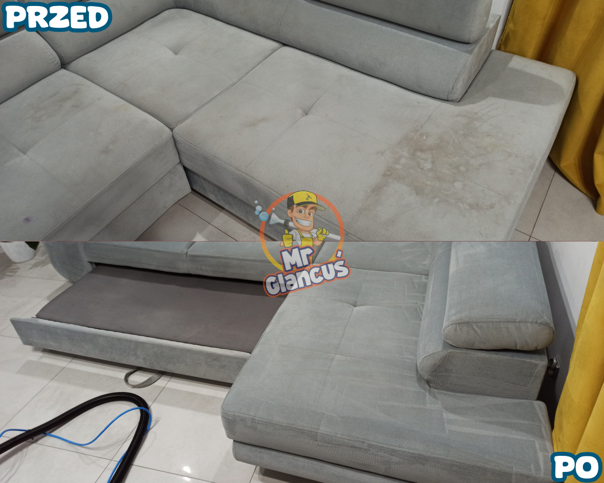 Usługa prania tapicerki kanapy zaplamionej uryną była przeprowadzona w pełni profesjonalnie, aby skutecznie pozbyć się tych problemów. Skutecznie zneutralizowaliśmy nieprzyjemny zapach oraz dokładnie usunęliśmy wszelkie plamy. Kanapa odzyskała swoją świeżość, czystość i estetykę, wyglądając jak nowa.