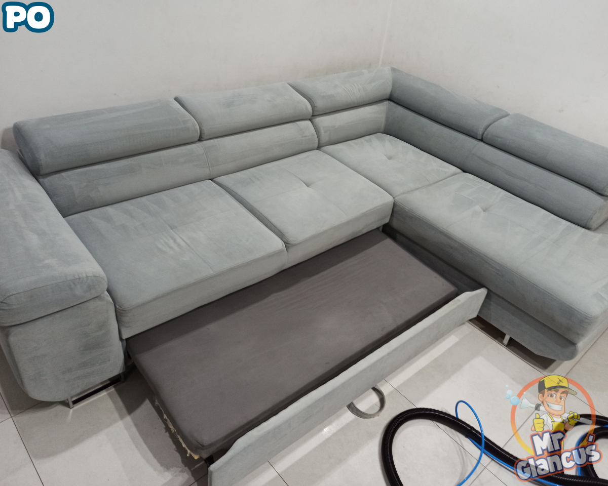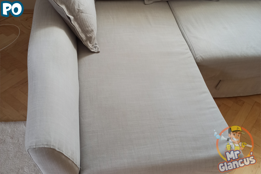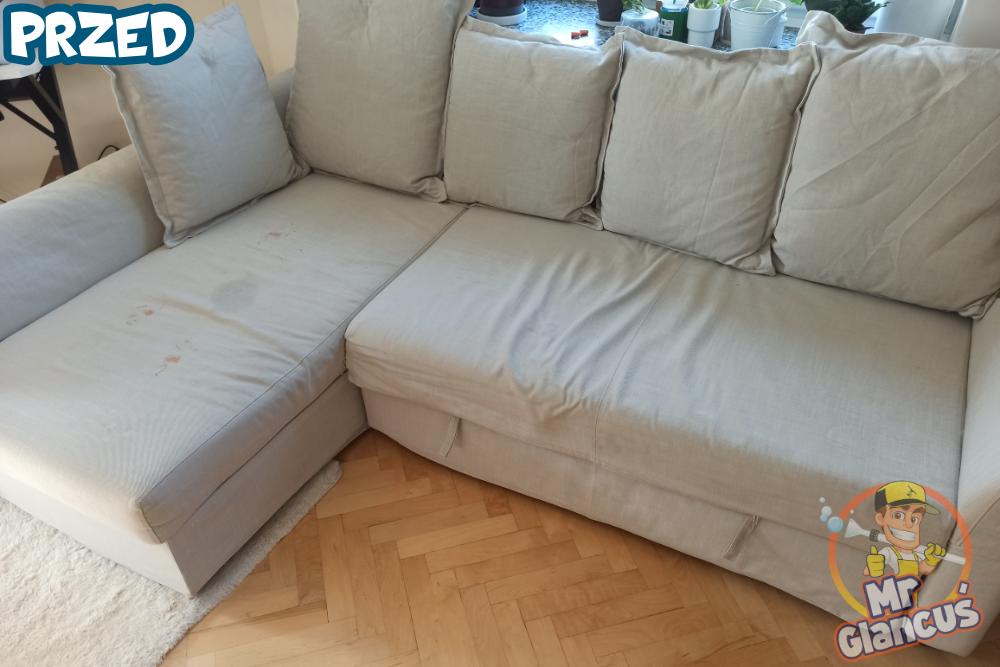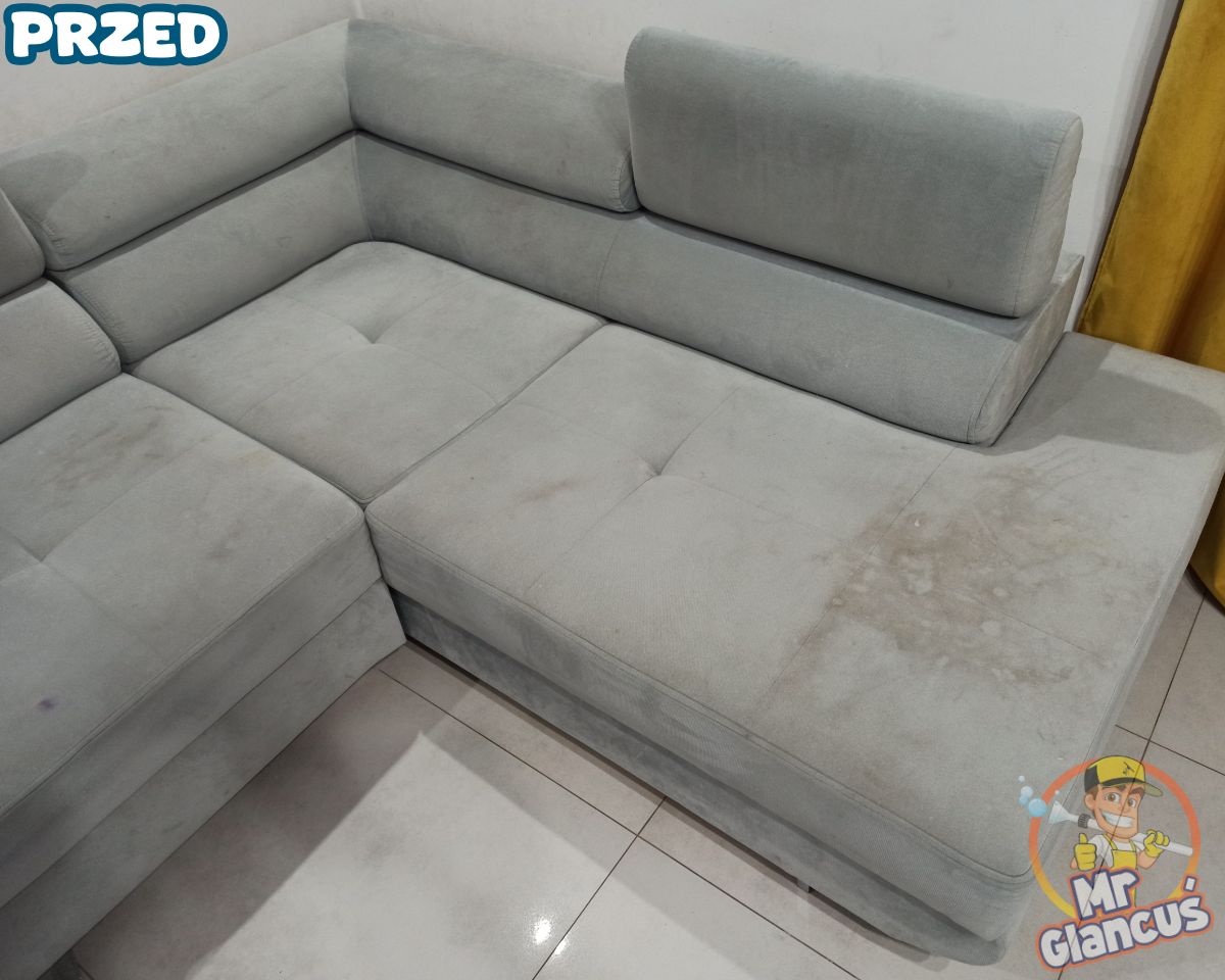 Pranie tapicerki jasnego narożnika typu IKEA była przeprowadzona z najwyższą starannością i dokładnością. Wykorzystaliśmy specjalistyczne środki czyszcząco-odplamiające, które skutecznie usunęły wszelkie plamy białkowe, plamy po ketchupie i zapachy, pozostawiając tapicerkę świeżą i odświeżoną. Narożnik odzyskał swoją pierwotną jasność i estetykę, wyglądając jak nowy.