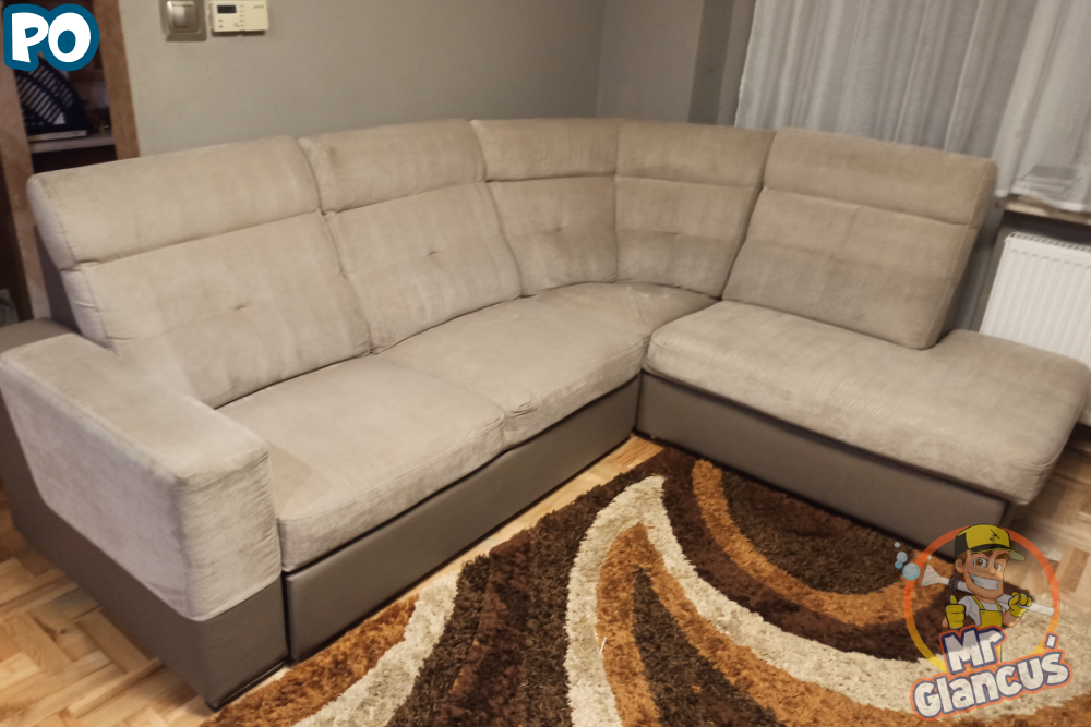 Usługa prania jasnego narożnika przyniosła rewelacyjne rezultaty, szczególnie w odniesieniu do usuwania uporczywych plam jedzeniowych. Dzięki zastosowaniu specjalistycznych środków czyszczących oraz nowoczesnych technologii, skutecznie wyeliminowaliśmy wszelkie zabrudzenia, pozostawiając tapicerkę w nieskazitelnej czystości. Rogówka odzyskała swoją pierwotną miękkość i świeżość. Po przeprowadzeniu głębokiego czyszczenia, tkanina stała się przyjemnie miękka w dotyku, co znacznie podniosło komfort użytkowania mebla.